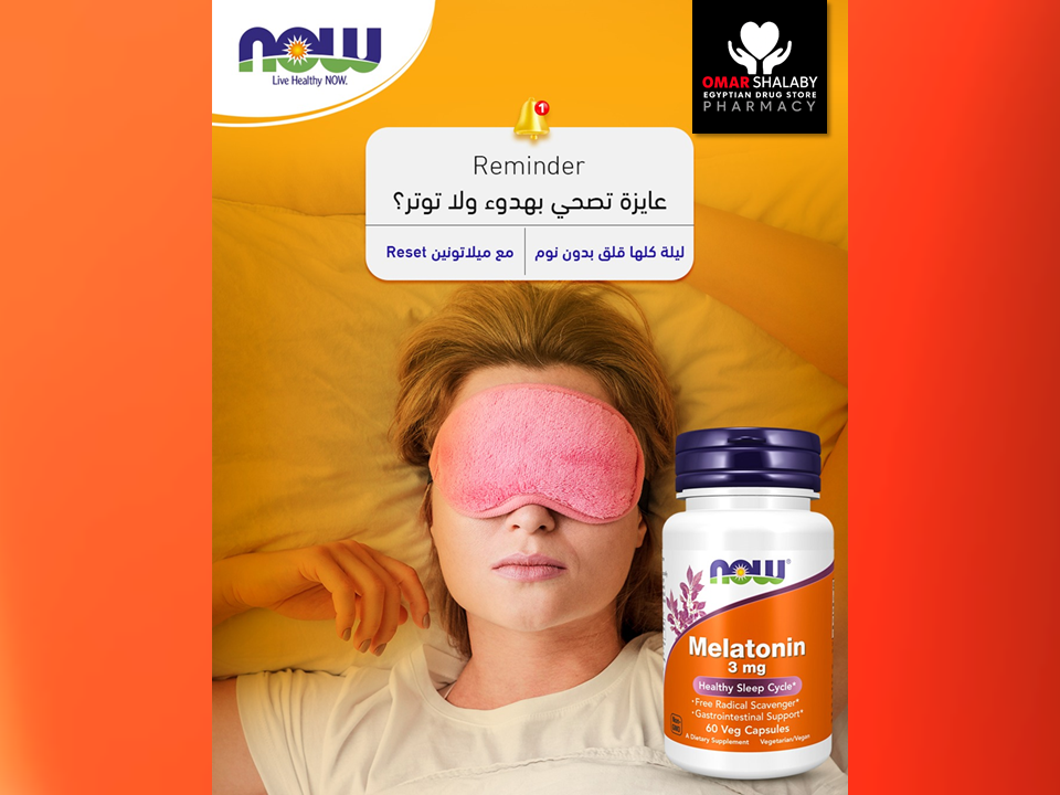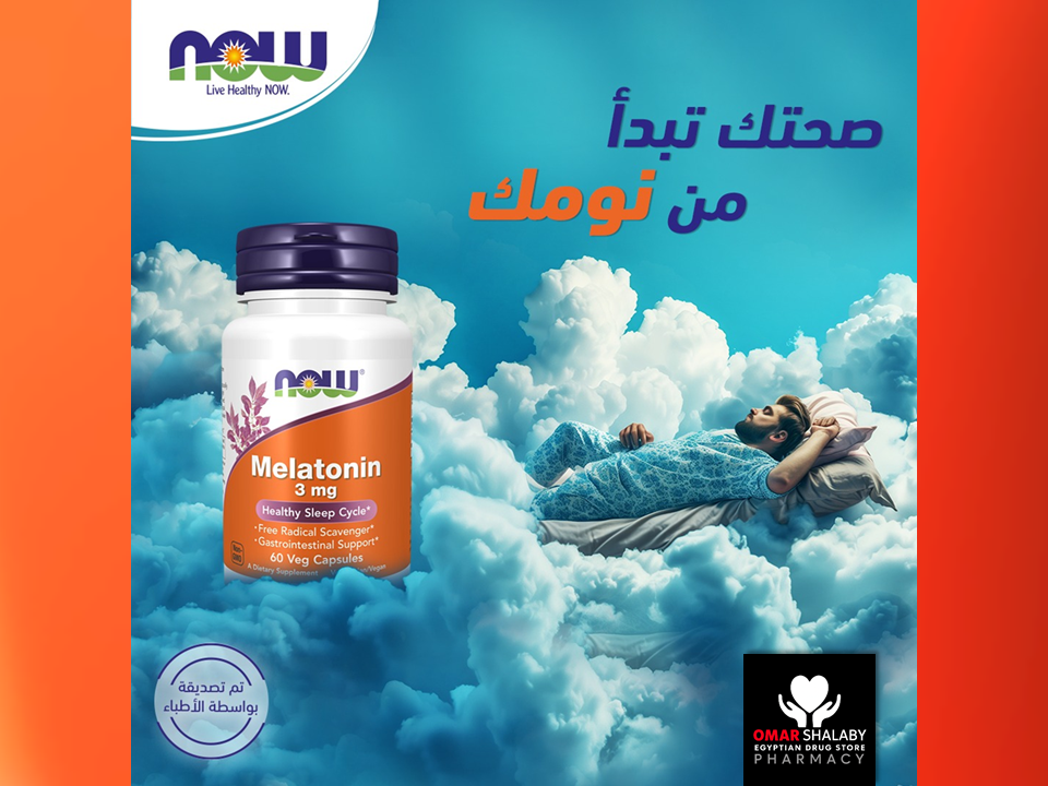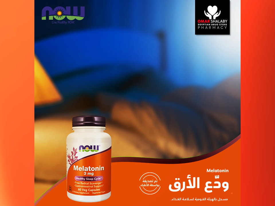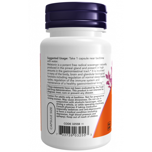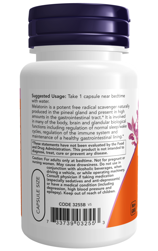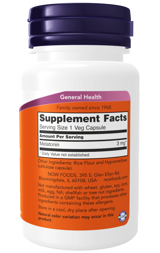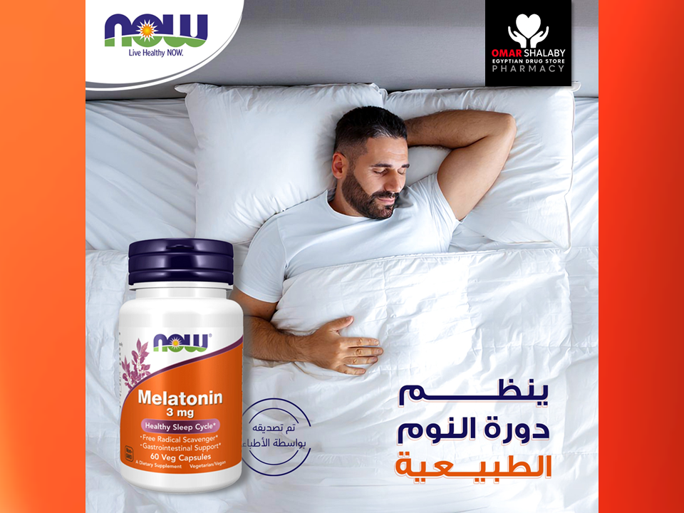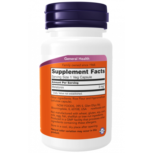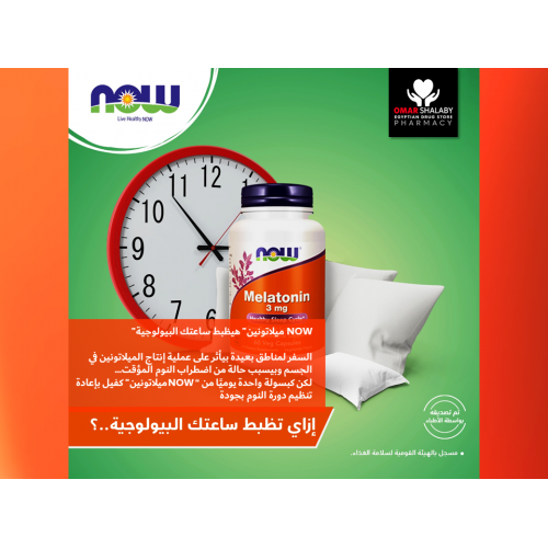 NOW MELATONIN 3 MG FOR HEALTHY SLEEP CYCLE ( MELATONIN ) 60 VEG CAPSULES