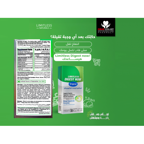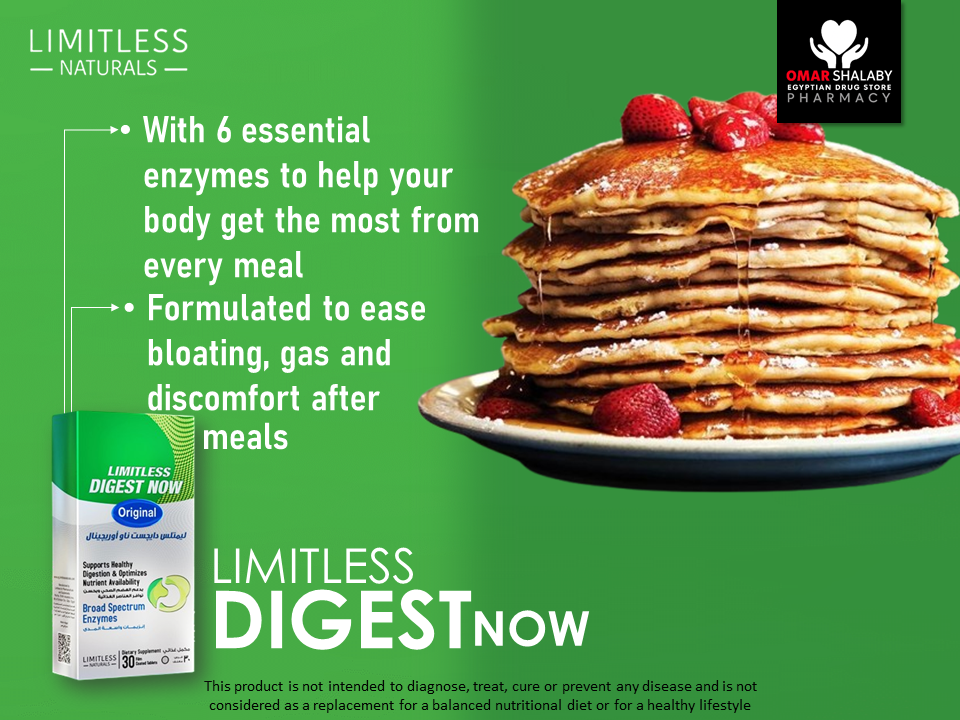 LIMITLESS DIGEST NOW ORIGINAL BROAD SPECTRUM ENZYMES FOR HEALTHY DIGESTION 30 FILM-COATED TABLETS