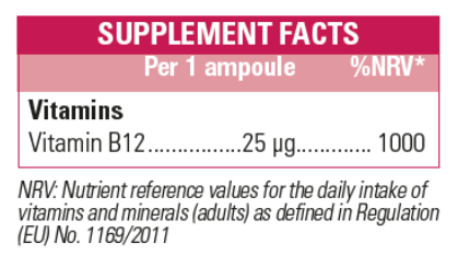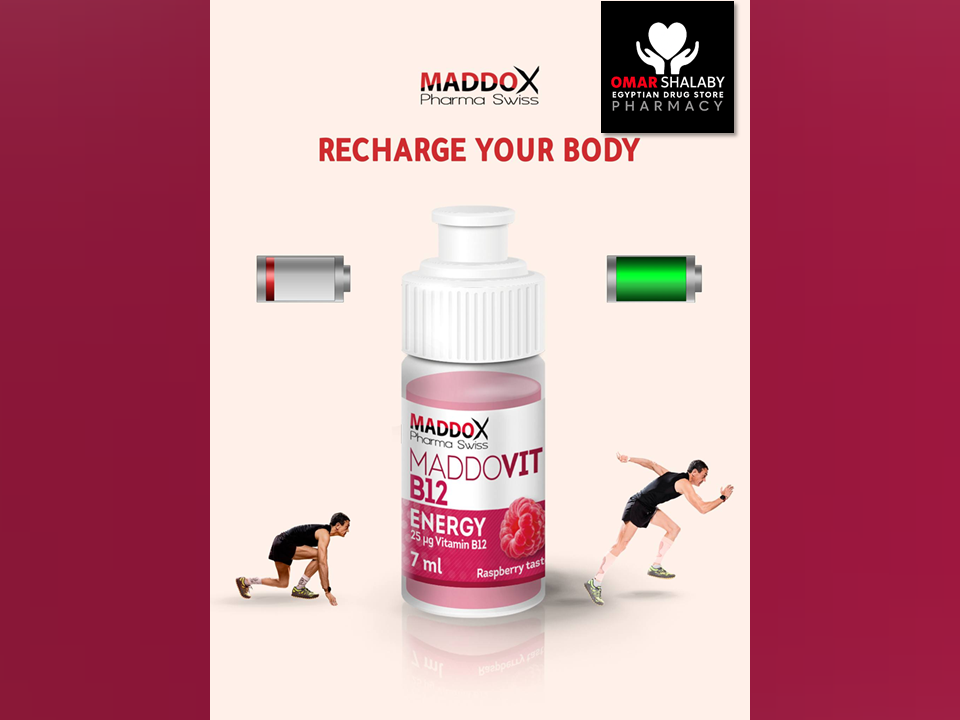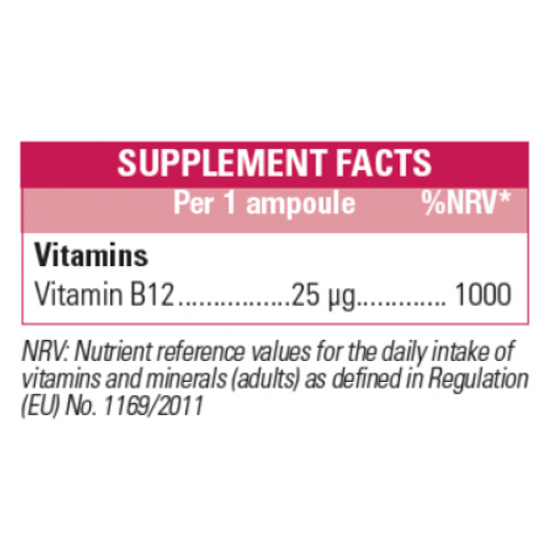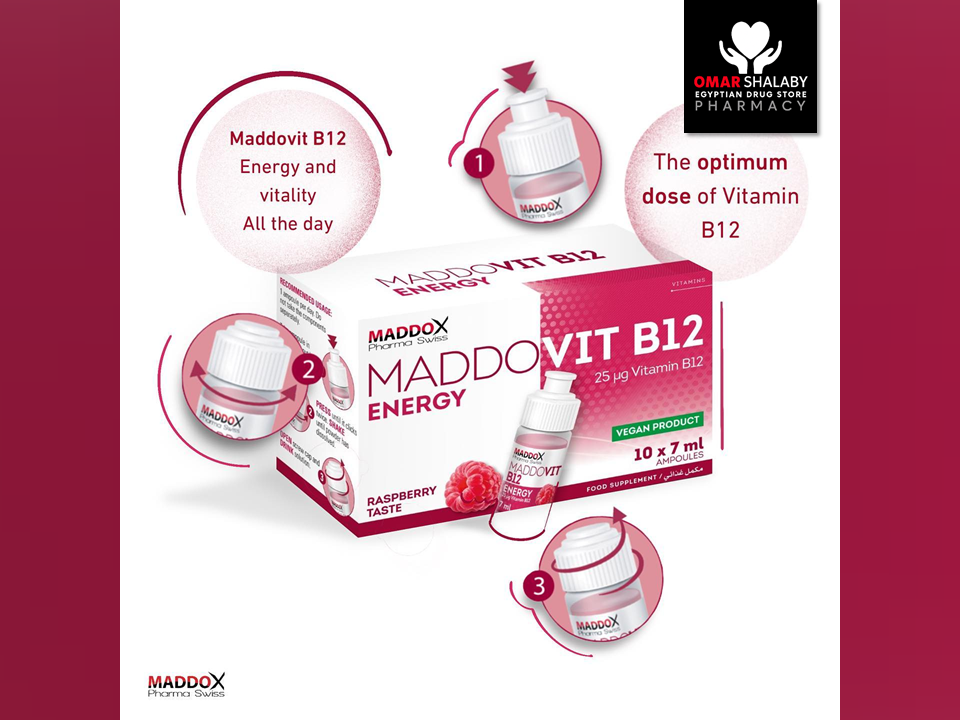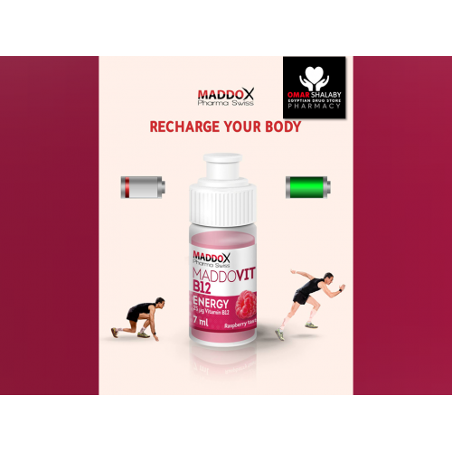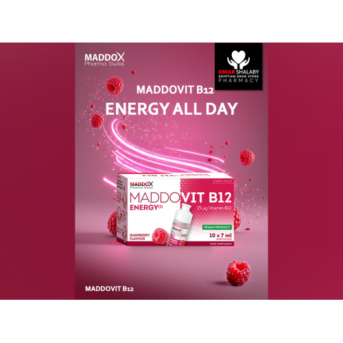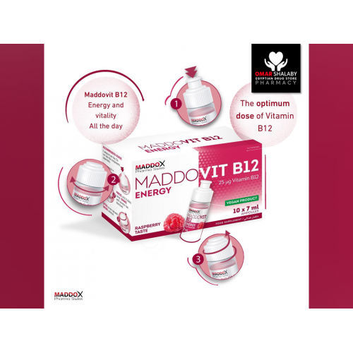 MADDOVIT B12 ENERGY 25 MCG ( VITAMIN B12 = CYANOCOBALAMIN ) 10 x 7 ML RASPBERRY TASTE DRINKABLE AMPOULES