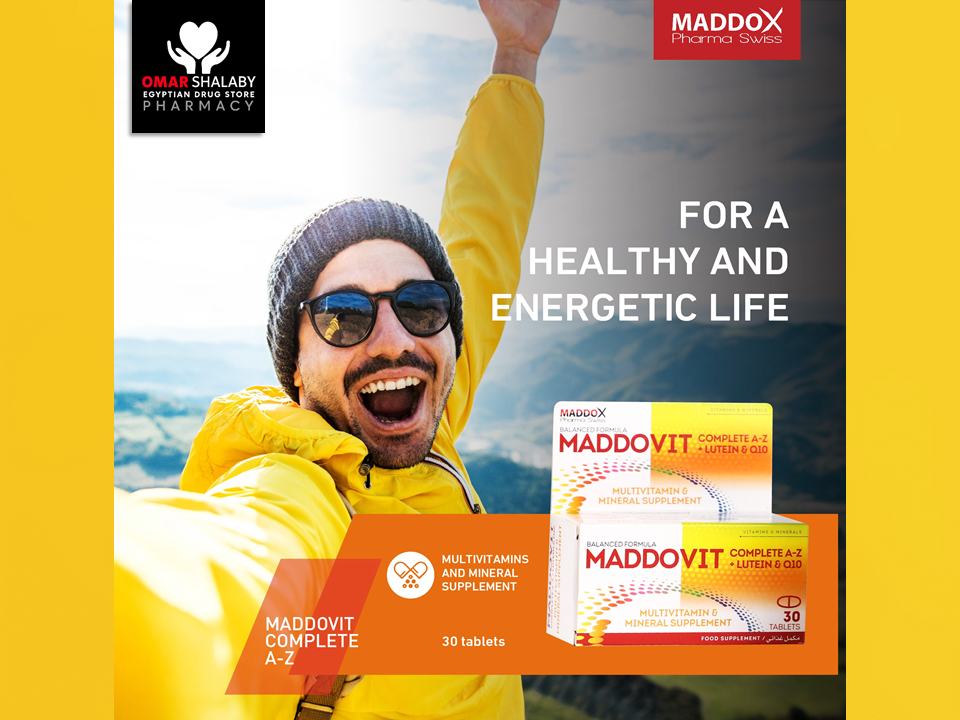 Energy: MADDOVIT Complete A-Z contributes to normal energy-yielding metabolism due to: Copper, lodine, Iron, Magnesium, Manganese, Vitamin B3, B2, B12, B6, C, Pantothenic acid, Phosphorus, and Thiamine.