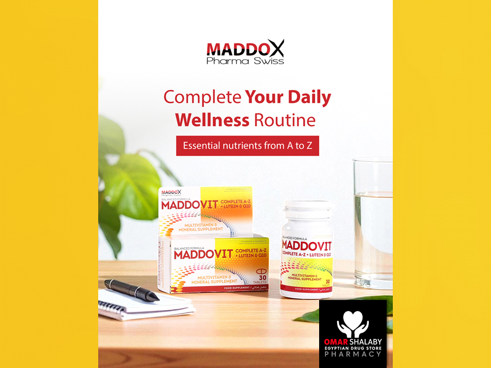 Tiredness and fatigue: MADDOVIT Complete A-Z contributes to the reduction of tiredness and fatigue due to: Folate, Iron, Magnesium, Vitamin B3, B2, B12, B6, C, and Pantothenic acid.