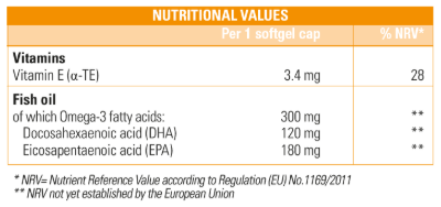 EPA and DHA contribute to the normal function of the heart. This beneficial effect is obtained with a daily intake of 250 mg of EPA and DHA.