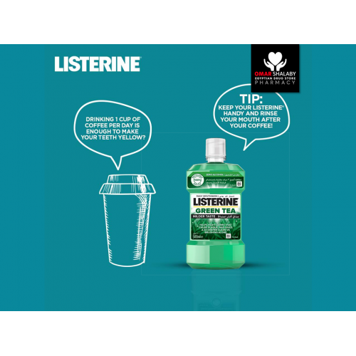 Listerine® Green Tea Milder Taste Mouthwash with fluoride to keep natural teeth strength. Fights plaque to promote gum health.