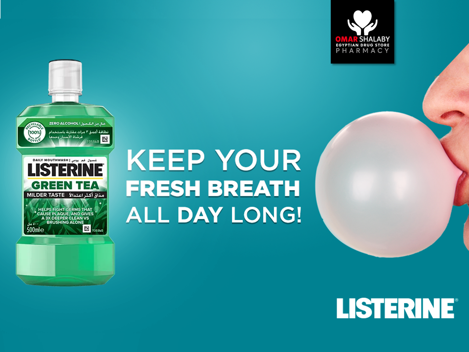 The benefits of Listerine® Green Tea Milder Taste Mouthwash: