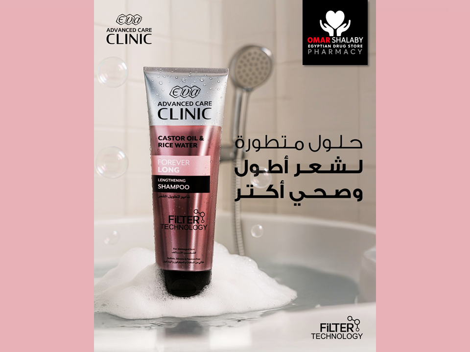 Eva Advanced Care Clinic Castor Oil & Rice Water Forever Long Lengthening Shampoo with Filter Technology helps to prevent harsh minerals and metals, present in tap water, to bind with your hair. It gently cleanses your damaged hair without causing its dryness. This shampoo is made with perfect complementary blend of ingredients, including Castor Oil & Rice Water, to help promote longer hair and reduce split ends and breakage.
