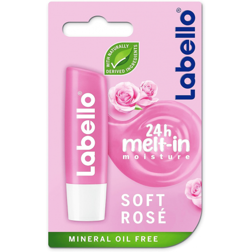 SOFT ROSE caring lip balm Follow us on @Labello_me www.labello.com Prettify your lips and enhance their natural rosiness with Labello® Soft Rosé! The unique formula enriched with rose extract instantly melts into your lips and keeps them moisturized for 24h*, while underlining the natural rosiness of your lips. Enjoy beautiful rosy and pleasantly soft lips all day!