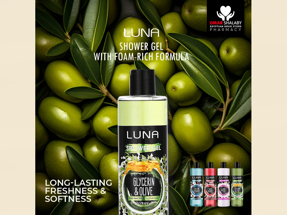 LUNA SHOWER GEL GLYCERINE & OLIVE MOISTURIZING LONG LASTING FRAGRANCED BODY WASH 500 ML