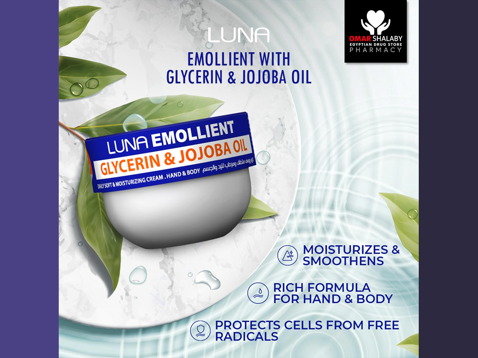 LUNA EMOLLIENT GLYCERIN & JOJOBA OIL DAILY SOFT & MOISTURIZING HAND & BODY CREAM 20 GM