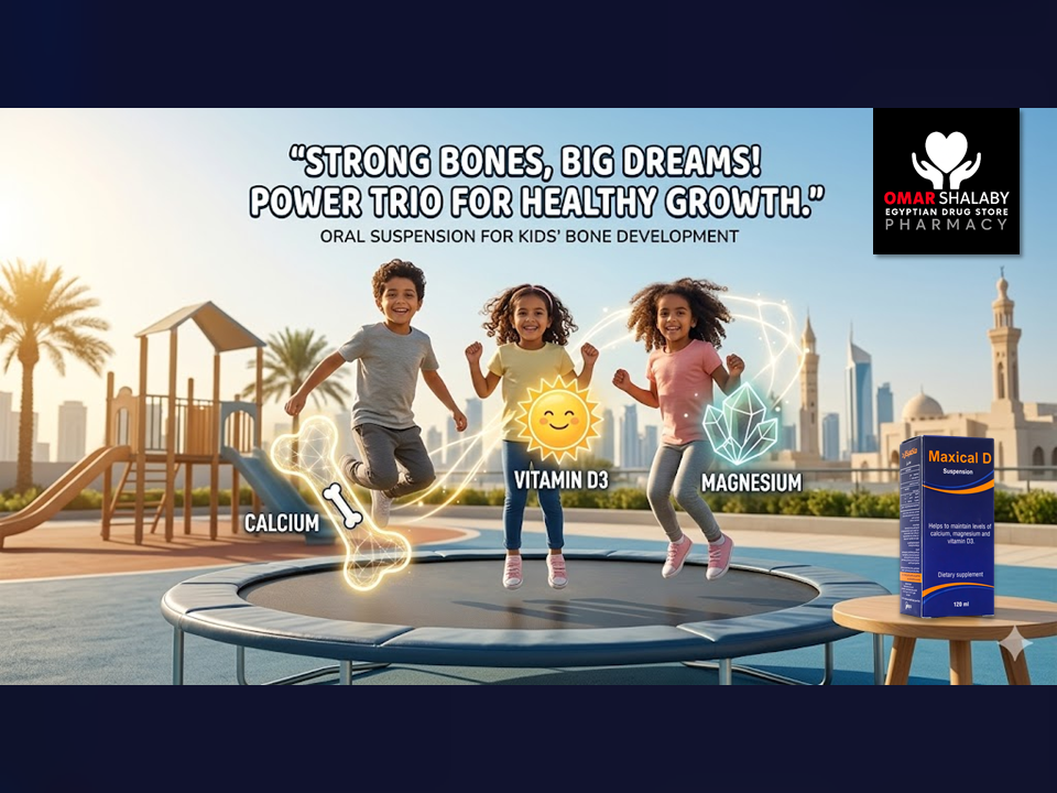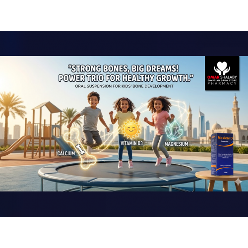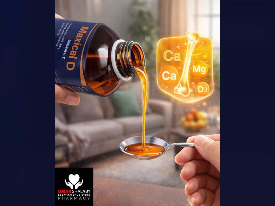 Maxical D oral suspension supplement containing Calcium carbonate, Magnesium carbonate, and Cholecalciferol (Vitamin D3) is formulated to support bone health and maintain normal mineral balance in the body. Calcium and magnesium are essential minerals for bone structure, muscle function, and nerve signaling, while Vitamin D3 helps improve the absorption of calcium from the intestine and supports bone mineralization.