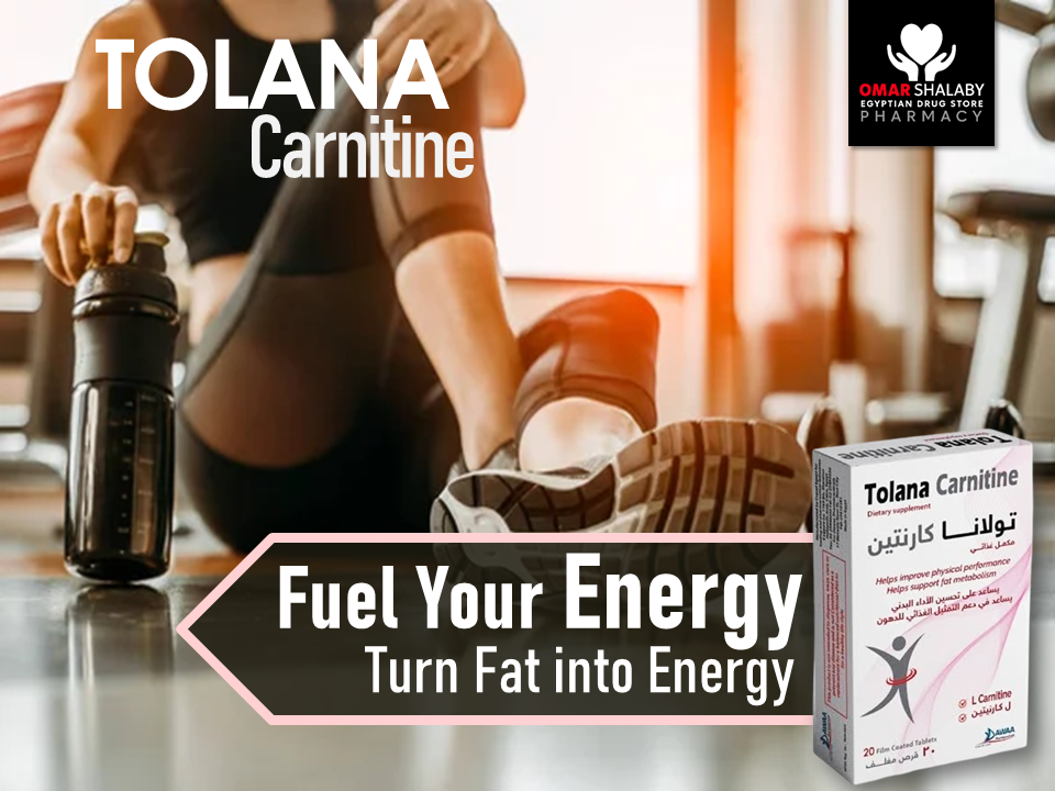 Tolana Carnitine is a dietary supplement containing L-Carnitine, an amino acid–like compound that plays a key role in energy metabolism. L-Carnitine facilitates the transport of long-chain fatty acids into the mitochondria, where they are oxidized to produce energy. Supplementation may help support fat metabolismenhance physical performance, and reduce fatigue, particularly during increased physical activity or exercise.