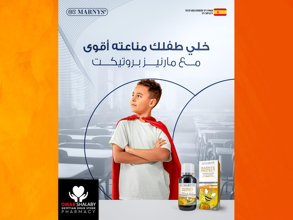Marnys® Protect Syrup is a multivitamin syrup with Royal Jelly and Propolis, containing 12 vitamins and a pleasant forest fruit flavor that complements the diet, especially for children and adolescents during their growth period.
