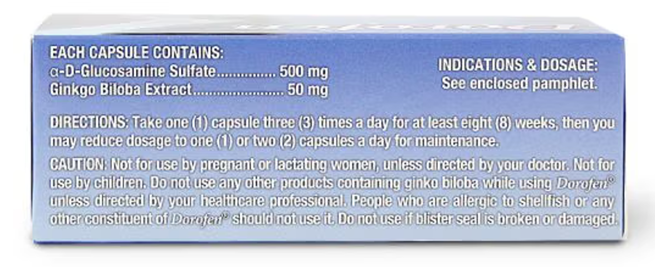 DOROFEN DIETARY SUPPLEMENT ( GLUCOSAMINE SULFATE + GINKGO BILOBA EXTRACT ) 30 CAPSULES