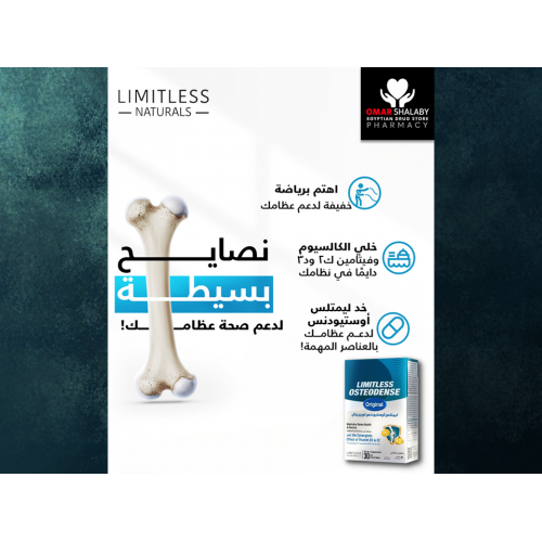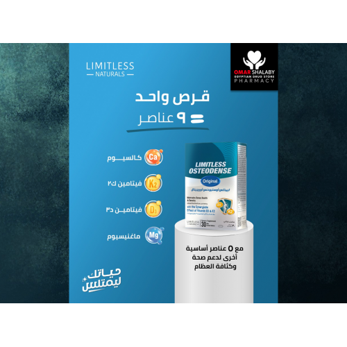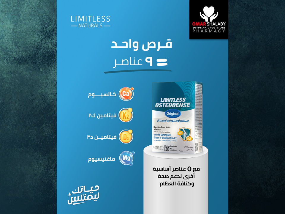 Limitless Osteodense is a bone and mineral support supplement combining essential vitamins and trace elements that work together to maintain bone density, muscle function, and metabolic health. It is commonly used to prevent or support treatment of deficiencies related to calcium and bone metabolism.