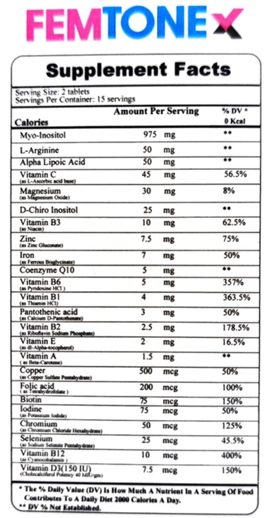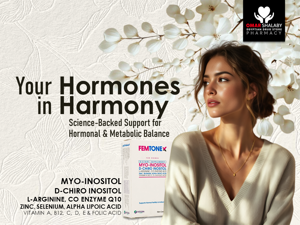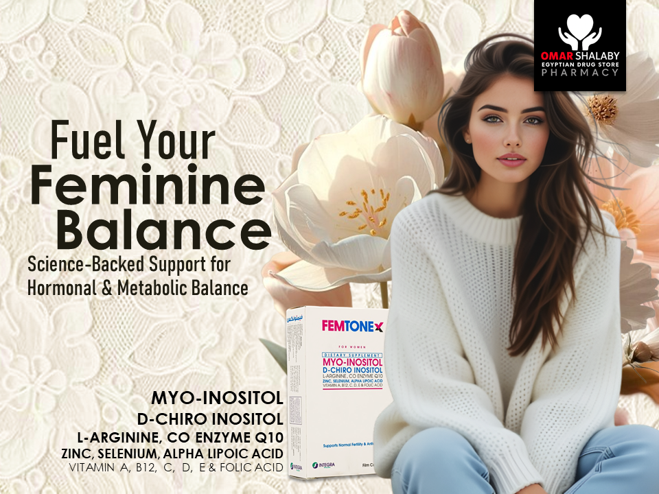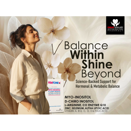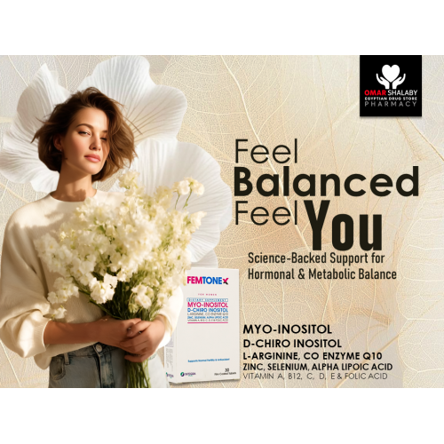 FEMTONEX is a nutritional supplement formulated to support female hormonal balance, metabolic health, and reproductive function. It combines key compounds like myo-inositol and D-chiro inositol, along with vitamins, minerals, and antioxidants.