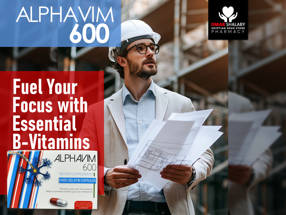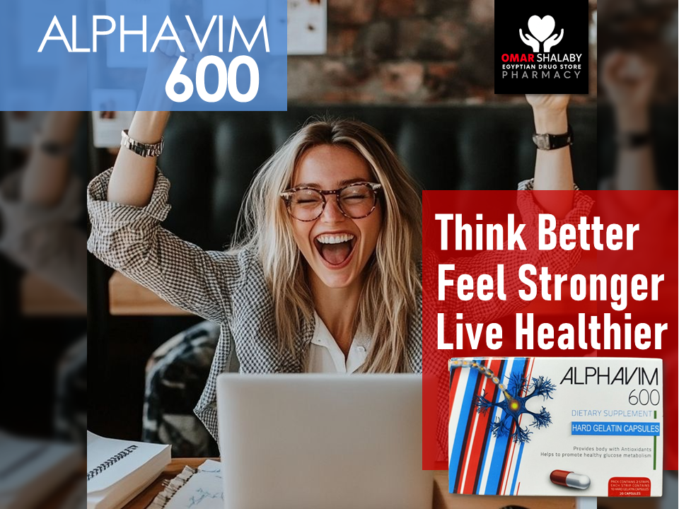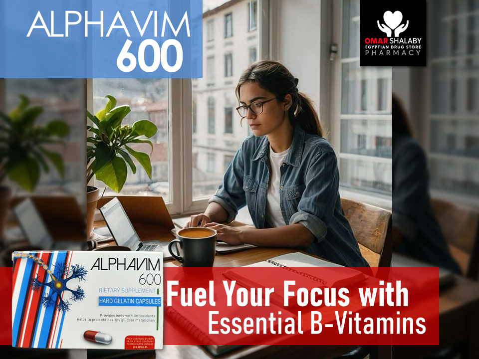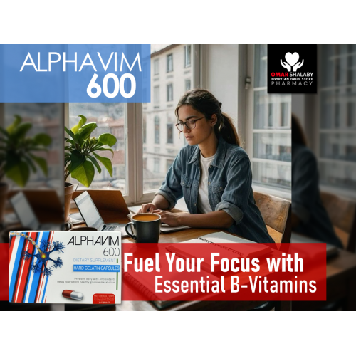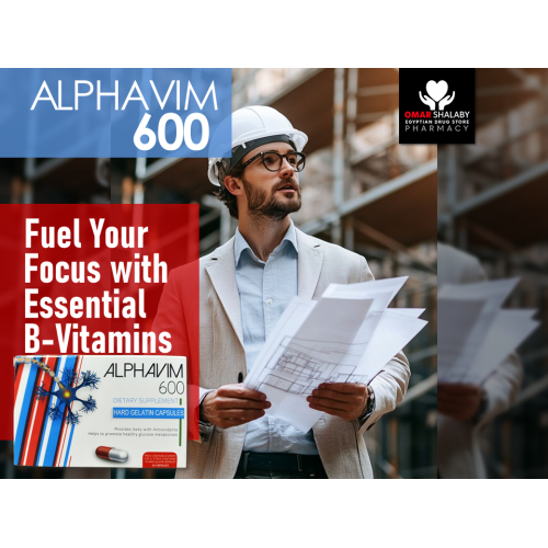 Alphavim 600 combines alpha lipoic acid, Ginkgo biloba extract, and essential B-vitamins (B6, folic acid, and vitamin B12) to support nerve health, cognitive function, and metabolic processes.