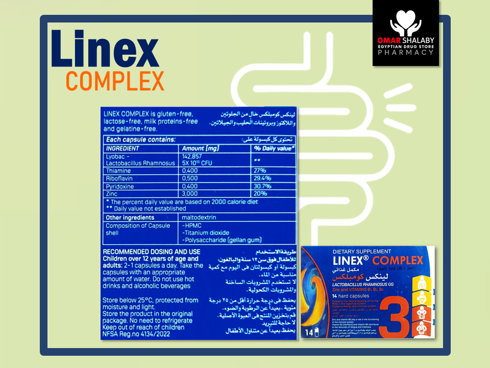 LINEX COMPLEX DIETARY SUPPLEMENT ( LACTOBACILLUS RHAMNOSUS GG + THIAMINE + RIBOFLAVIN + PYRIDOXINE +ZINC ) 14 HARD CAPSULES