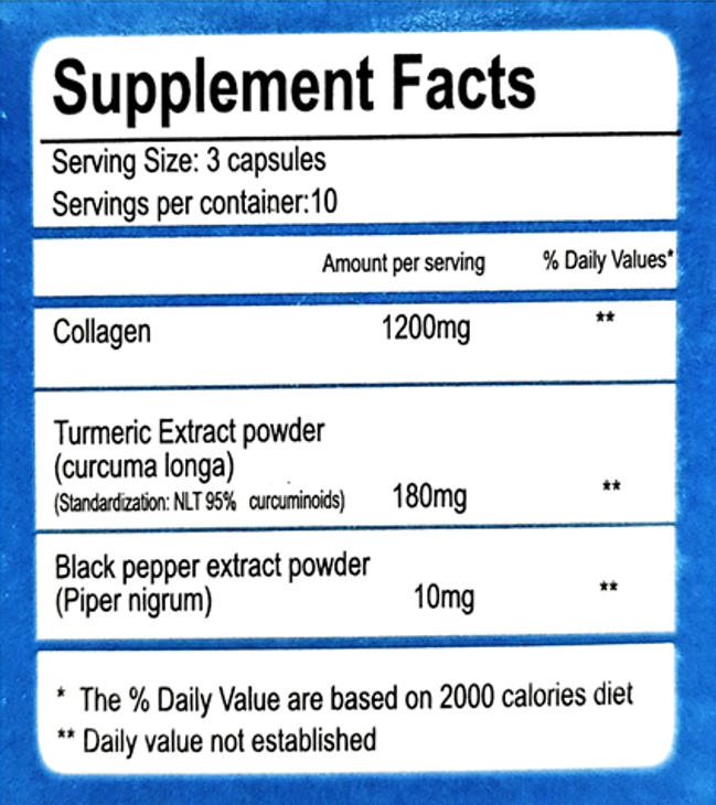 | Turmeric Extract Powder (Curcuma longa) (Standardized to NLT 95% Curcuminoids) – 180 mg | — |