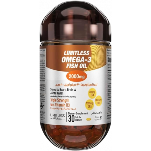 LIMITLESS OMEGA is a dietary supplement formulated with a combination of Vitamin D3 and high-strength Fish Oil to support overall health and well-being. Each serving provides essential omega-3 fatty acids, including Eicosapentaenoic Acid (EPA) and Docosahexaenoic Acid (DHA), along with Vitamin D3 for optimal bone, cardiovascular, and immune system support.