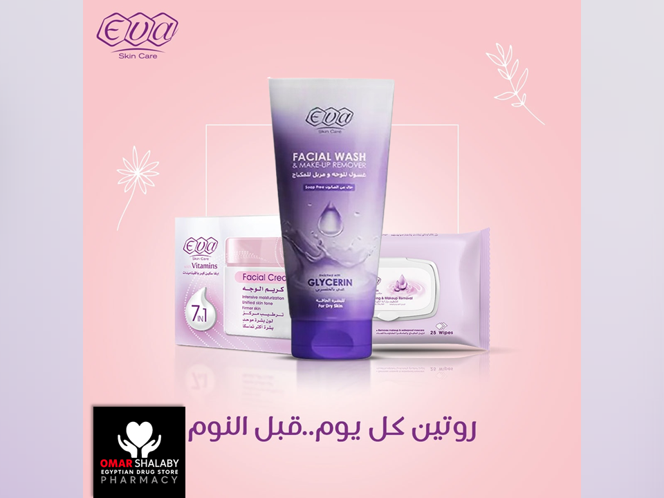Eva Facial Wash & Make-up Remover is enriched with Glycerin to best suit your dry skin. Glycerin provides just the right amount of moisture required to hydrate the dry skin and restore moisture that skin loses.