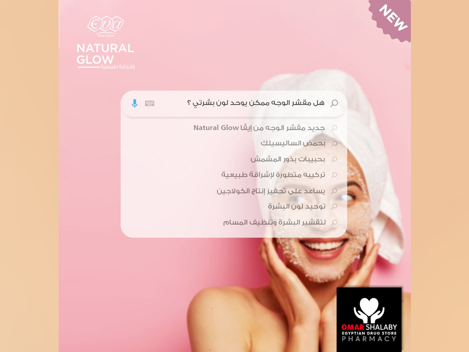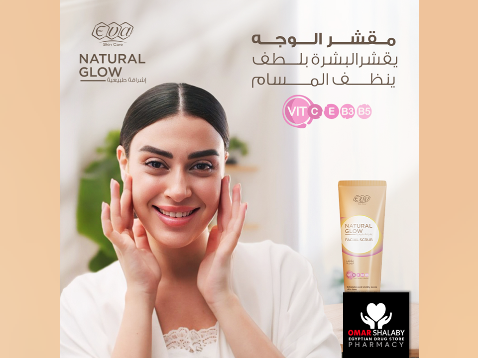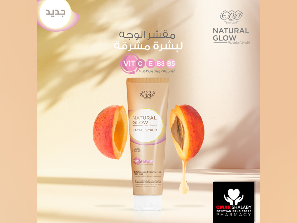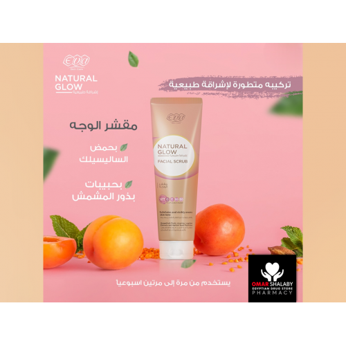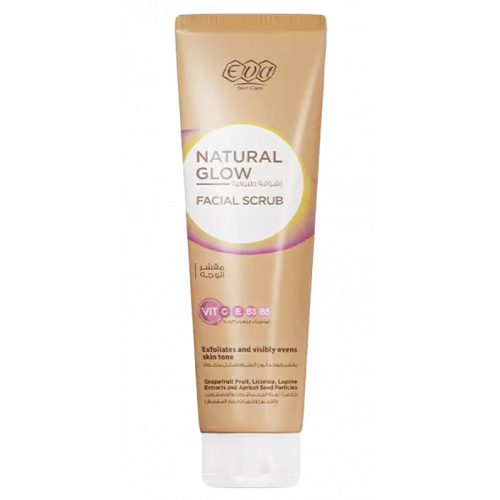 Eva Skin Care Natural Glow Facial Scrub advanced formula is enriched with multivitamins and natural ingredients that even your skin tone, and Salicylic Acid and Apricot Seeds Particles which exfoliate the skin and clean the pores by removing dirt and oil. It also cleanses the skin deeply and gives it the desired glow Grapefruit Fruit, Licorice, Lupine Extracts and Apricot Seed Particles
