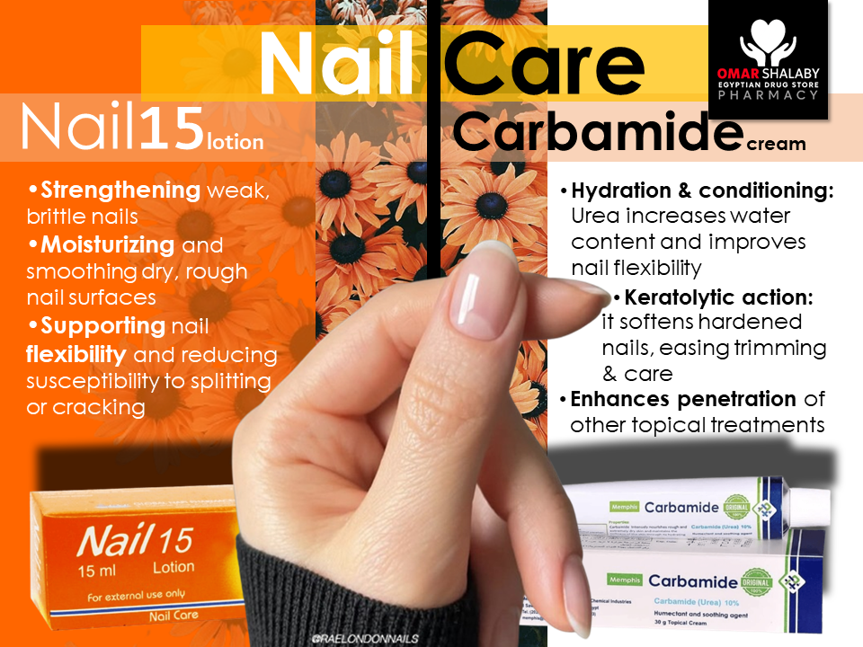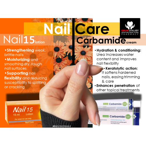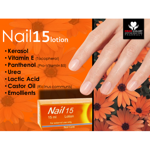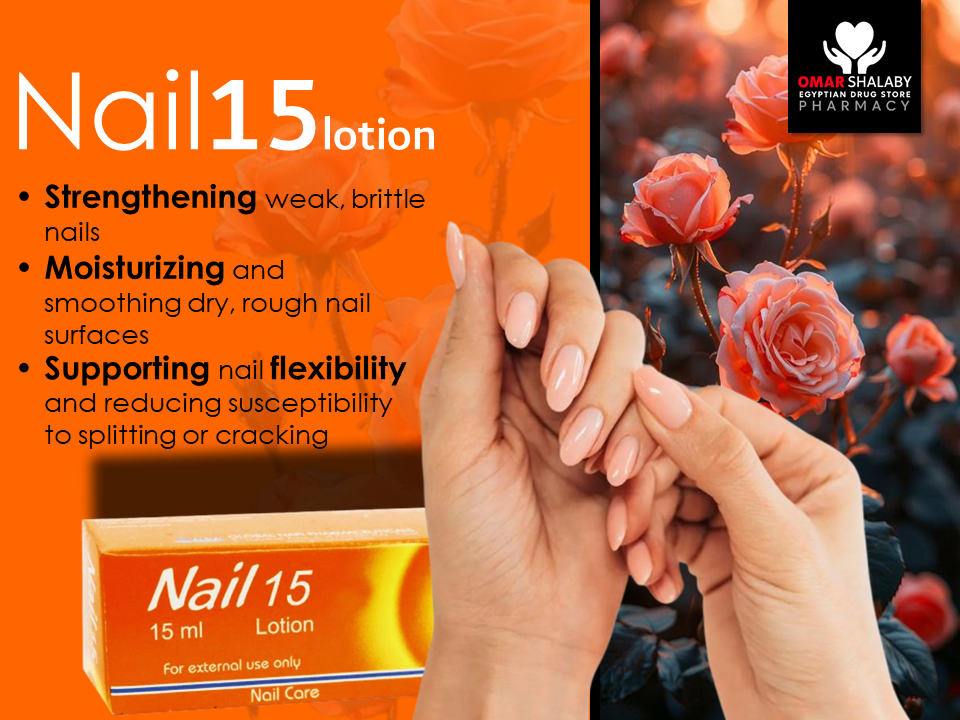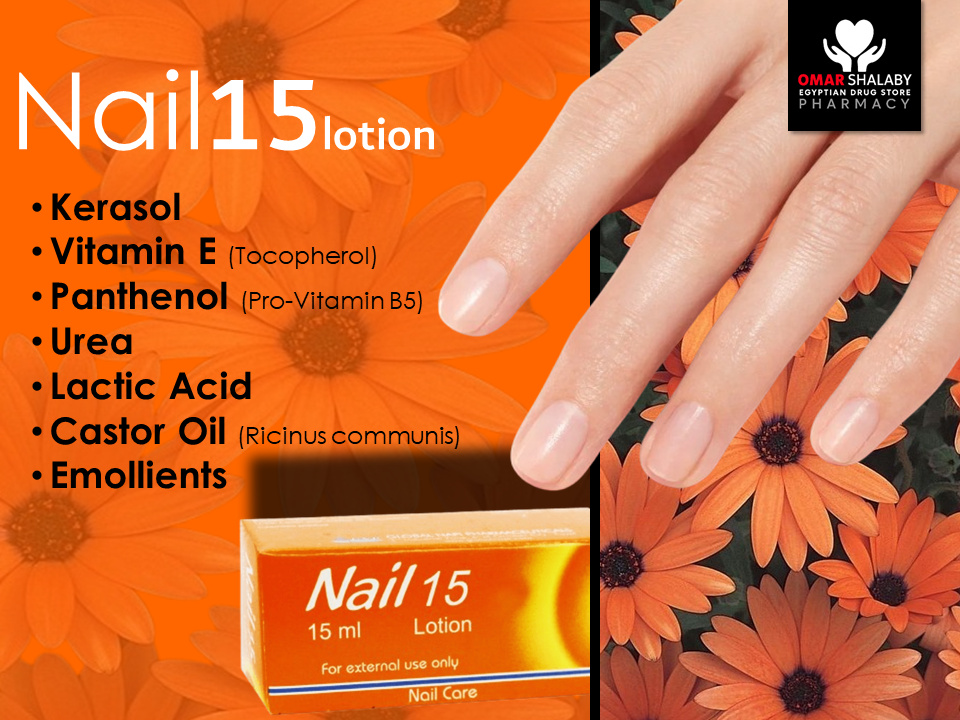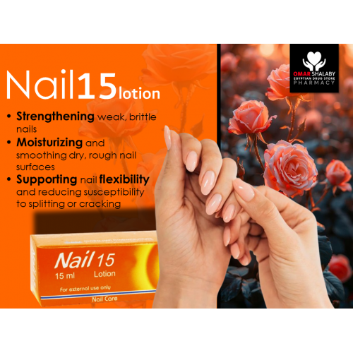 NAIL 15 Lotion is a topical nail care formulation indicated for the management of brittle, dry, or structurally compromised nails. It combines keratolytic, hydrating, and conditioning agents to support nail health, improve texture, and enhance flexibility.