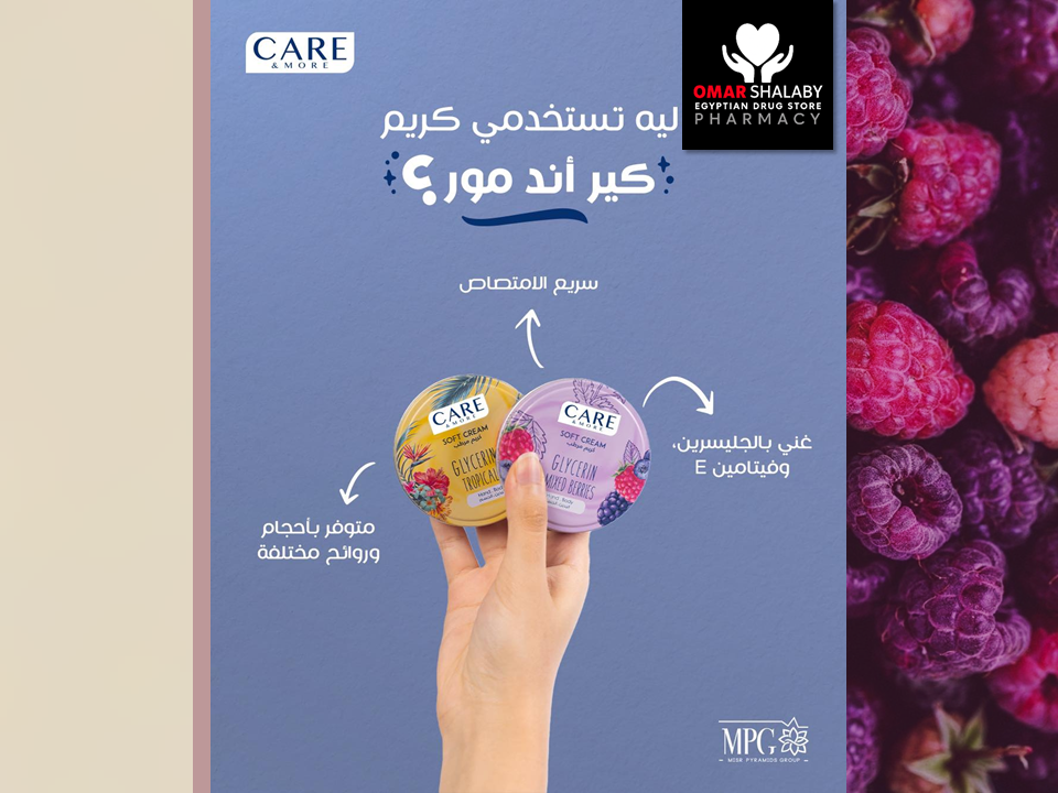 Keep your hands and body soft, smooth, and protected with Care AND More Glycerin Soft Cream. Enriched with Glycerin, Aloe Vera Extract, Vitamin E, and Almond Oil, this nourishing cream moisturizes, protects, and shields your skin from dryness and environmental stress. Perfect for daily use on all skin types.