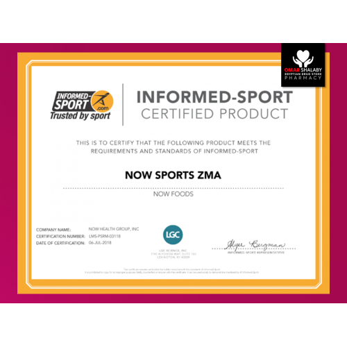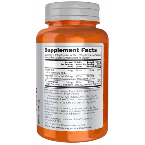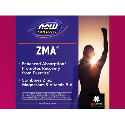 NOW SPORTS ZMA RECOVERY DIETARY SUPPLEMENT ( VITAMIN B6 PYRIDOXINE + MAGNESIUM + ZINC ) 90 VEG CAPSULES