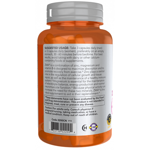 ZMA® is a combination of zinc, magnesium and vitamin B-6 designed to maximize absorption and to promote recovery from exercise.* Zinc plays a central role in the regulation of cellular growth and tissue repair, as well as the maintenance of a healthy immune system.* Magnesium is essential for the maintenance of electrolyte balance, energy production and normal neuromuscular function.* Because physical activity can increase the need for these two minerals, ZMA® is the ideal supplement to aid in their replenishment.*