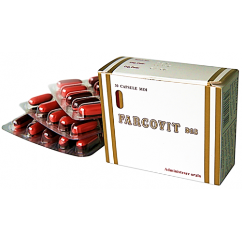 Farcovit B12 30 capsules lipotropic ( essential phospholipids 10 mg - vit.B1 2mg - vit.B6 2mg - vit.B2 1mg - ortic acid 20 mg - folic acid .5 mg - biotin .1mg - safflower oil 0.1mg -cynara extract 50mg - calcium pantothenate 5 mg - nicotamide 10 mg - inositol 50 mg )