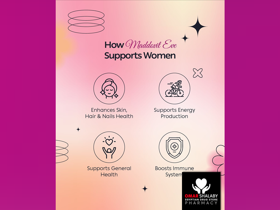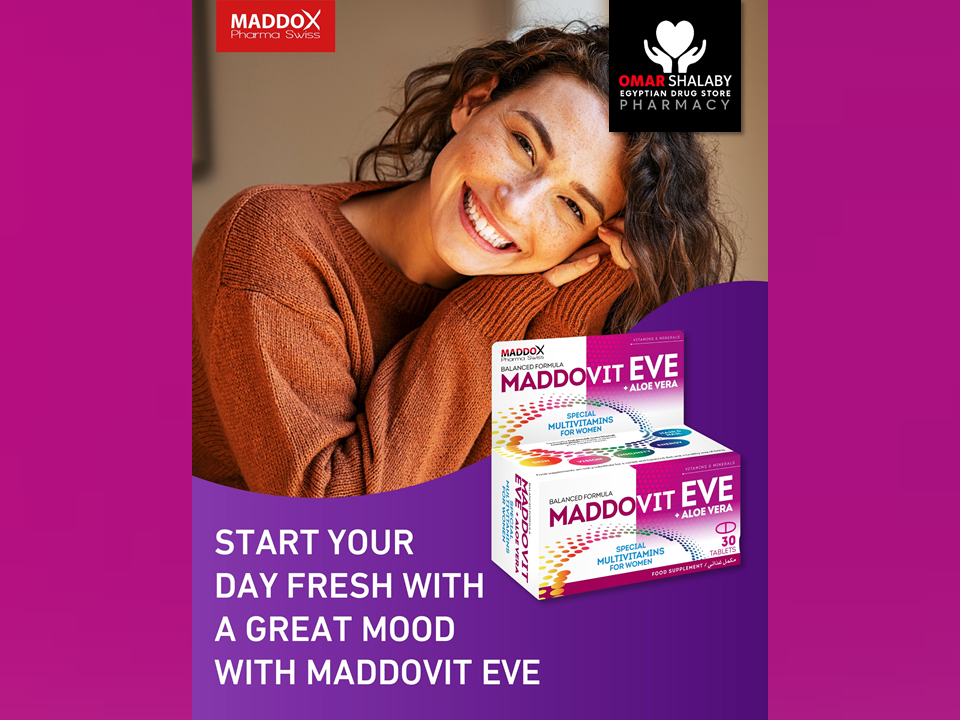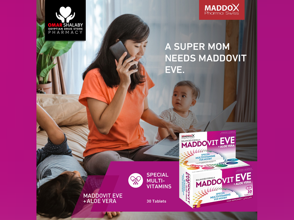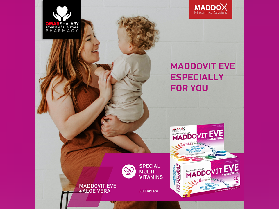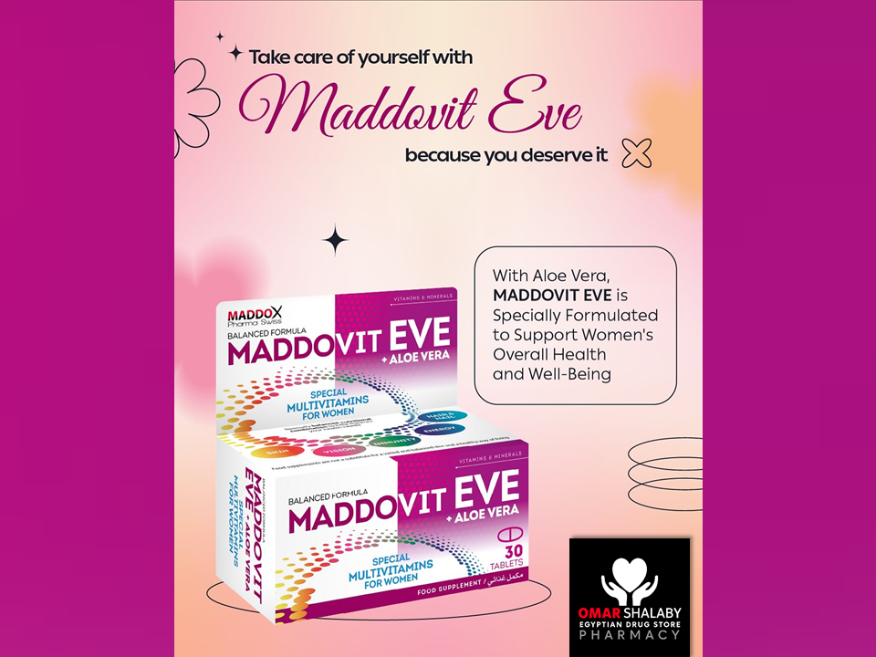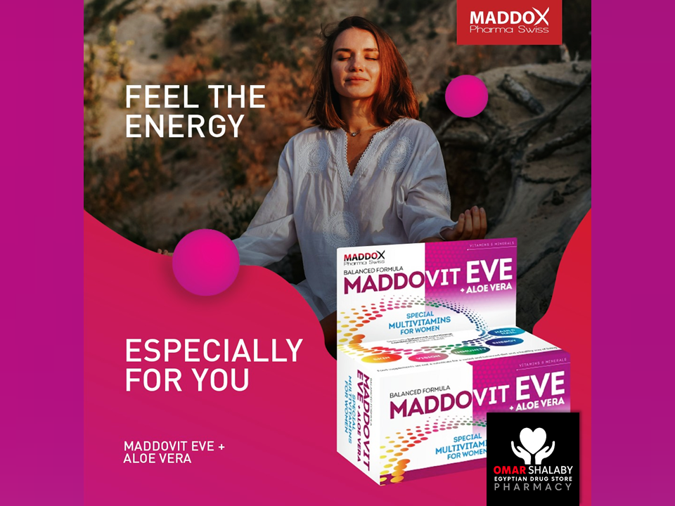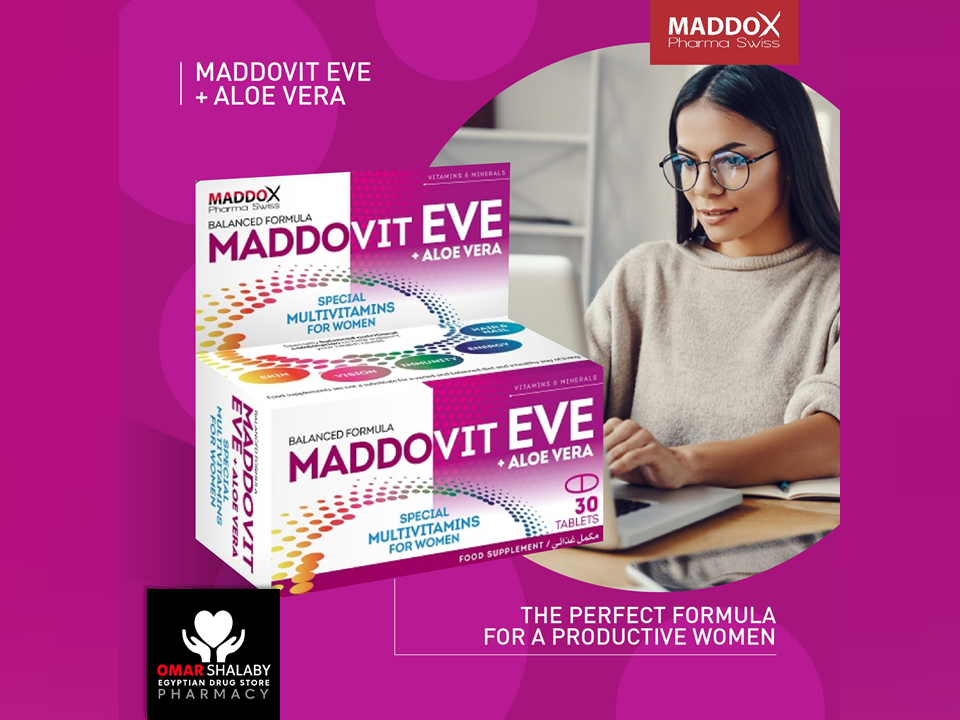 MADDDOVIT EVE with Aloe Vera, a Specially Balanced Nutritional Combination to Help Support Women's Health Needs.
