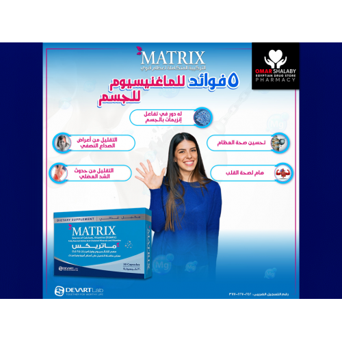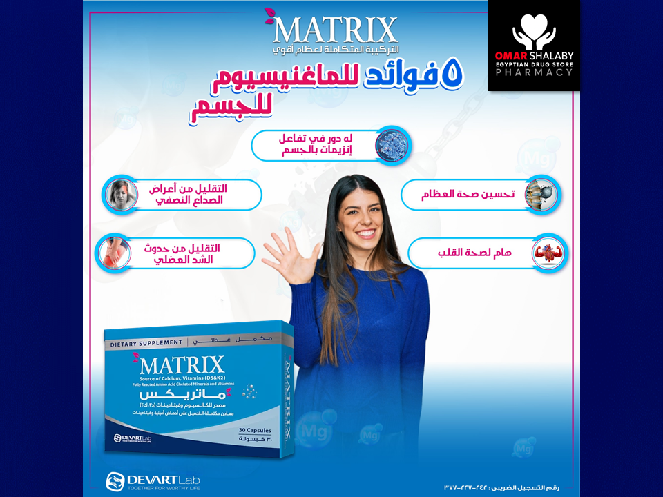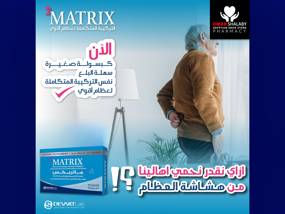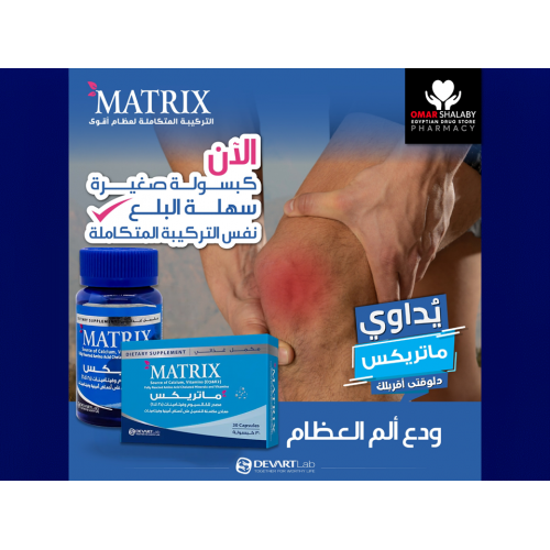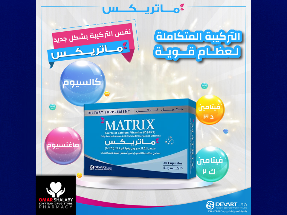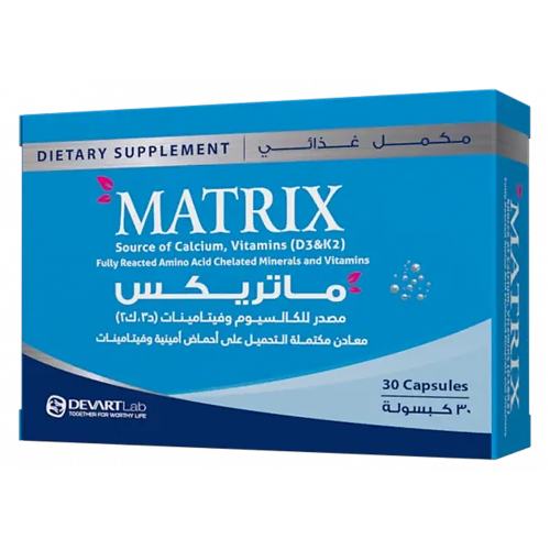 MATRIX innovative bone formula for adults containing 11 powerful active ingredients which provides maximum bone protection and restoring bone mass density. Calcium formula containing (Vitamin K2) to ensure proper calcium deposition bones, Rich with other essential minerals, including Magnesium, Potassium, Zinc, Manganese, Boron, and Copper