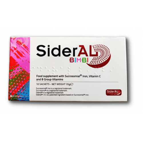 SiderAL® Bimbi is a Sucrosomial® Iron, Vitamin C and B Group Vitamin-based food supplement. It is useful for addressing dietary deficiencies or in cases of increased body demand for iron, Vitamin C, Vitamin B6 and Vitamin B12.