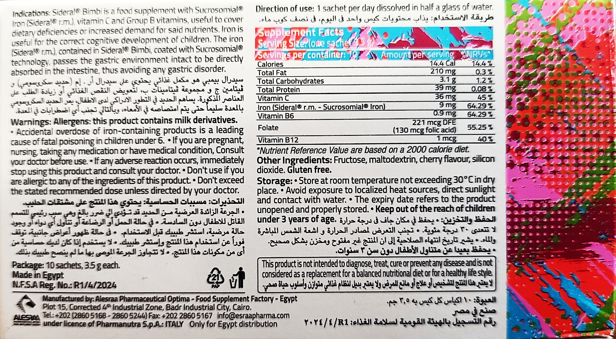 SIDERAL BIMBI IRON & MULTIVITAMINS FOOD SUPPLEMENT 10 SACHETS