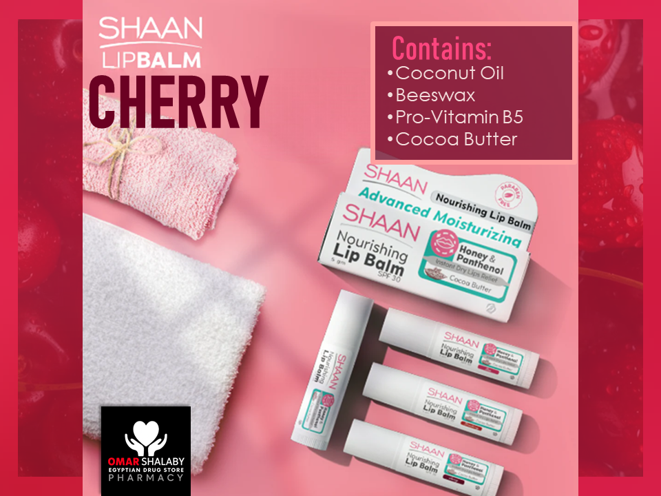 SHAAN ADVANCED MOISTURIZING NOURISHING LIP BALM (SPF 30+) WITH COCOA BUTTER — CHERRY 5 GM