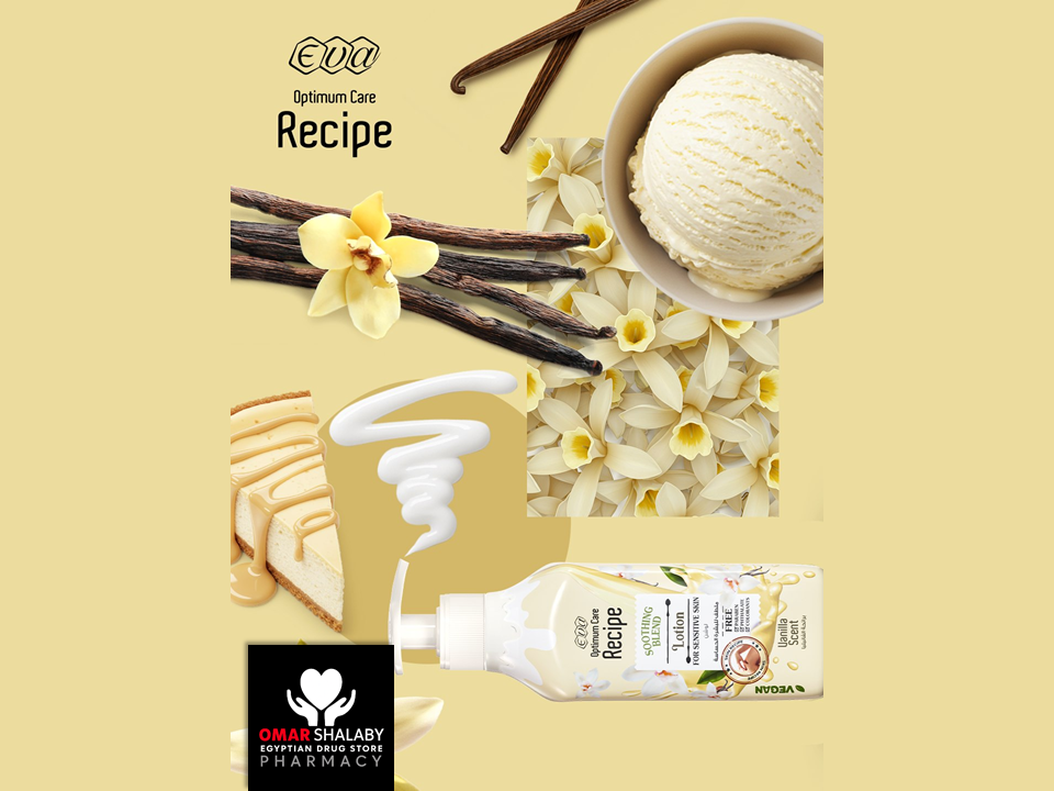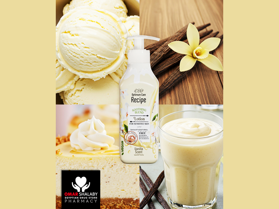 EVA OPTIMUM CARE RECIPE VANILLA SCENT SOOTHING BLEND LOTION FOR SENSITIVE SKIN 370 ML