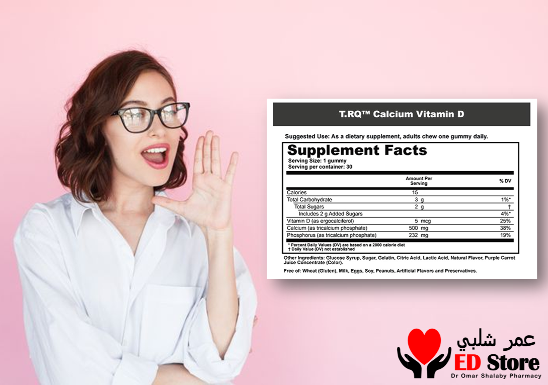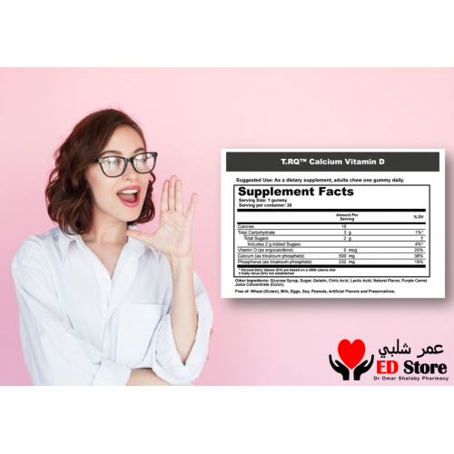 Calcium 500 Plus Vitamin D T.RQ ( Calcium 500 mg + Vitamin D 5 mcg + Phosphorus 232 mg ) 30 gummies