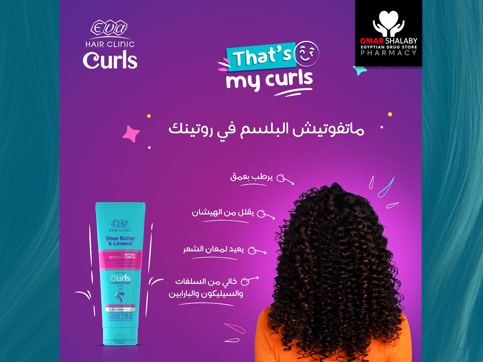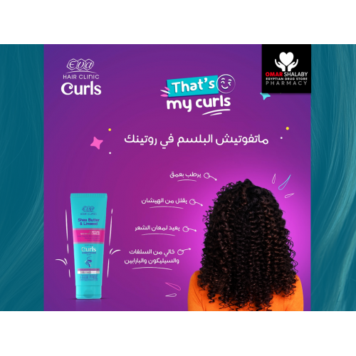 Eva Hair Clinic Curls Deep Hug Silicone Free Conditioner detangles and improves hair manageability while leaving a lasting hydration coat enhancing curls definition and reducing split ends - shea butter and linseed contains Vit A< E and Fatty acids.