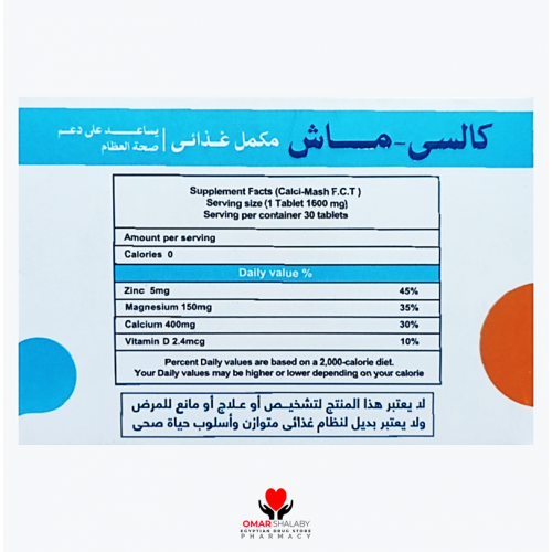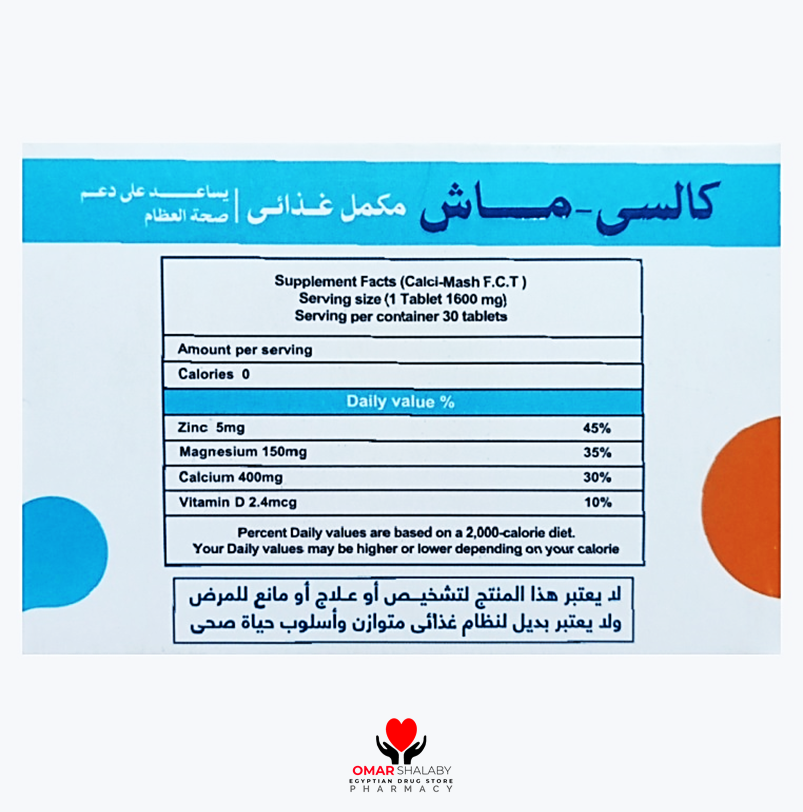 CALCI - MASH ( CALCIUM 400 MG + MAGNESIUM 150 MG + VITAMIN D 2.4 MCG + ZINC 5 MG ) 30 FILM-COATED TABLETS