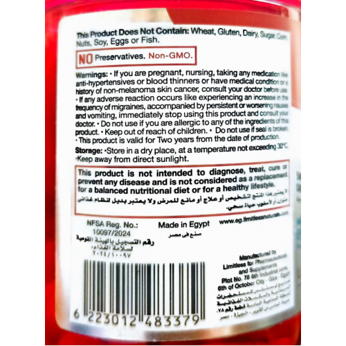 LIMITLESS CoQ 10 100 MG DIETARY SUPPLEMENT 30 HARD GELATIN CAPSULES