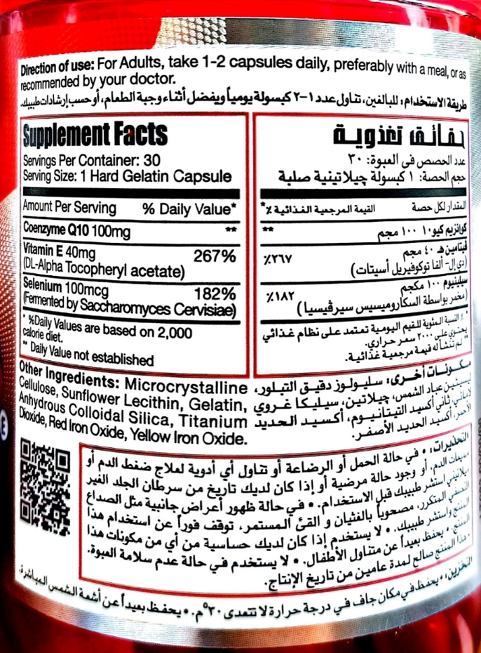 Supports Cardiovascular Health, Cognitive Functions & Energy Production with The Synergistic Antioxidant Effect of Selenium & Vitamin E.
