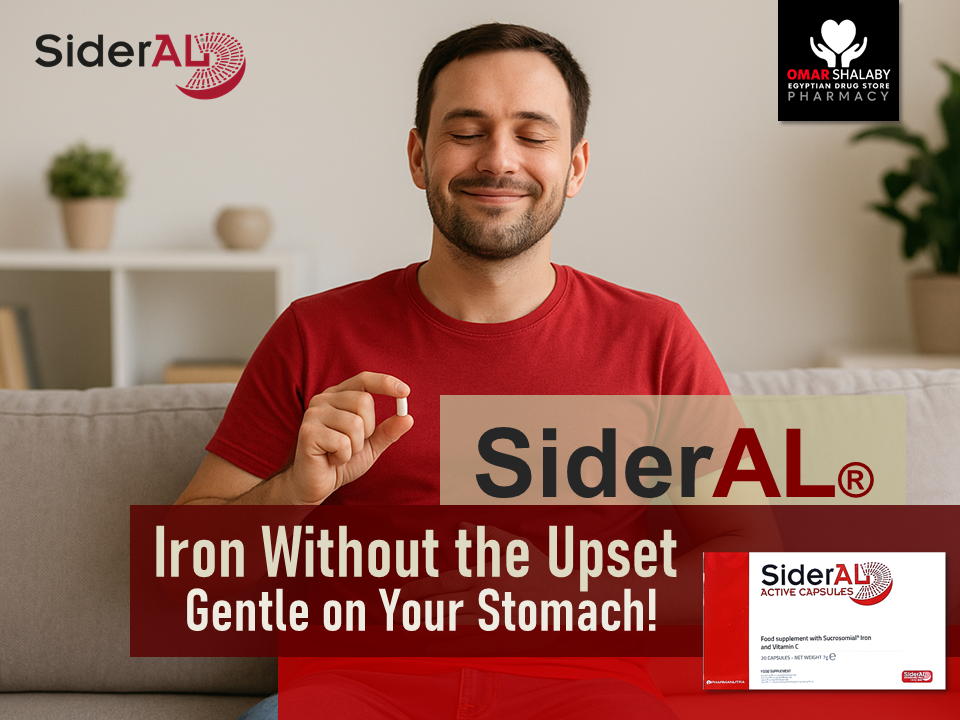 Sideral® r.m., iron coated with Sucrosomial® technology, passes through the gastric environment intact to be directly absorbed in the intestine, thus avoiding any gastric discomfort.