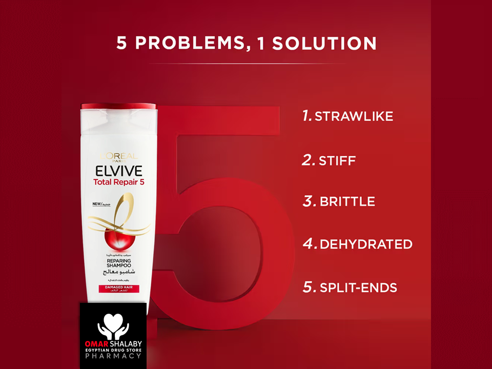 EXPERT REPAIRING FORMULA: L'Oreal Paris Elvive Total Repair 5 Repairing Shampoo for silky, healthy, stronger, supple, and easy to style hair*