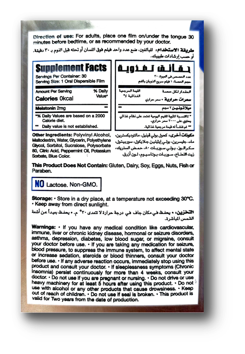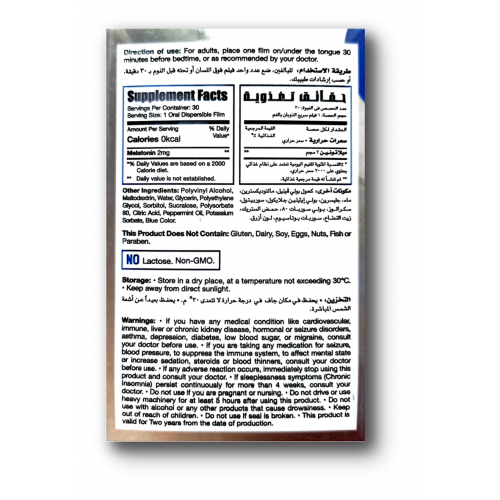 Direction of use: For adults, place one film on/under the tongue 30 minutes before bedtime, or as recommended by your doctor.
