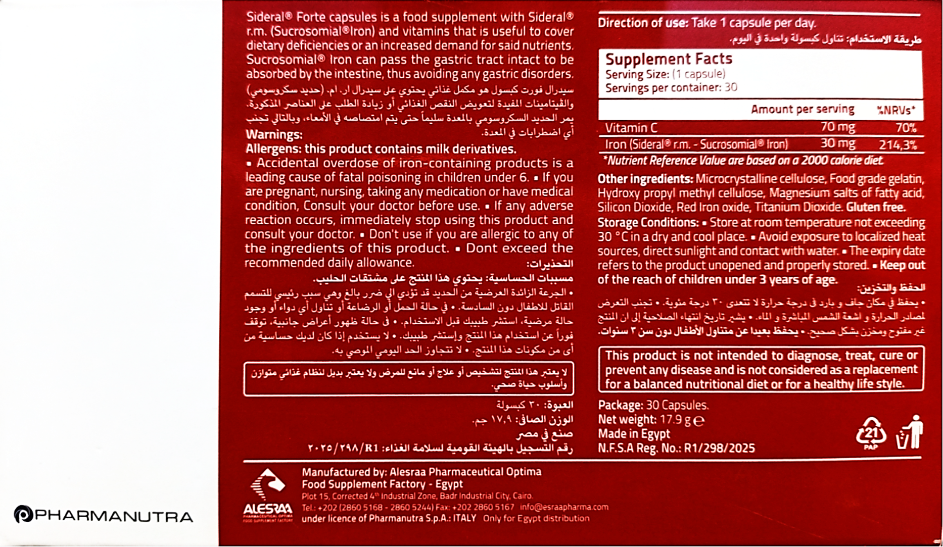 SIDERAL FORTE IRON & VITAMIN C FOOD SUPPLEMENT 30 CAPSULES
