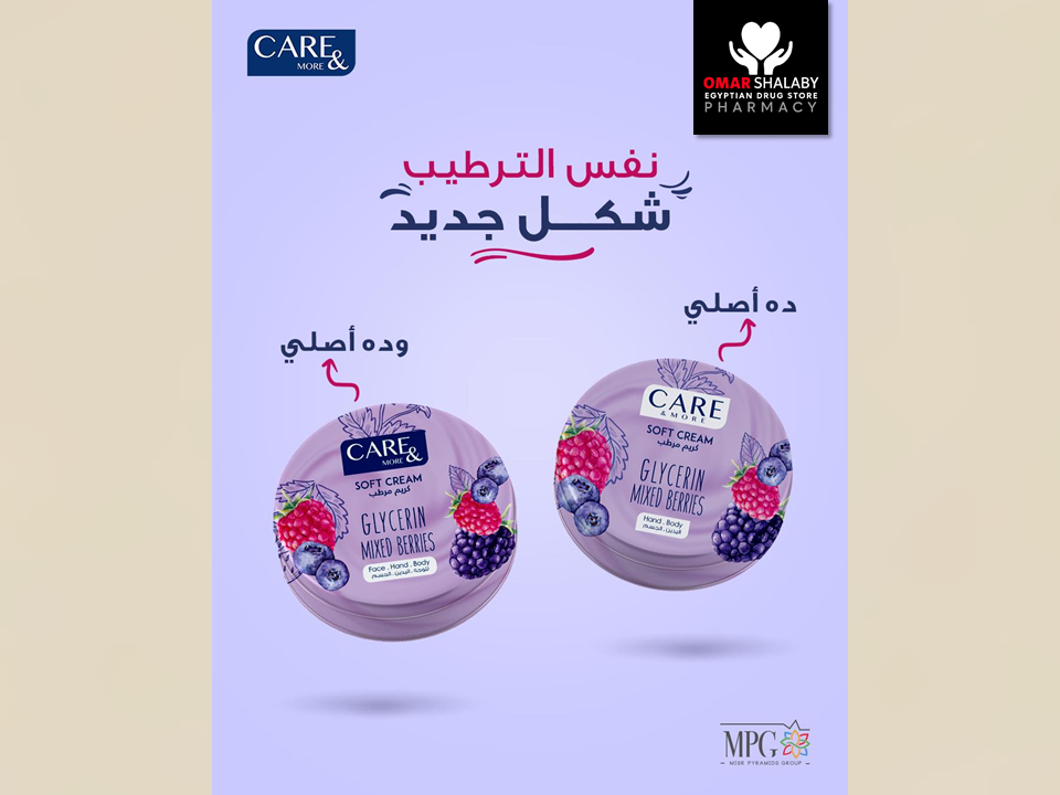 Keep your hands and body soft, smooth, and protected with Care AND More Glycerin Soft Cream. Enriched with Glycerin, Aloe Vera Extract, Vitamin E, and Almond Oil, this nourishing cream moisturizes, protects, and shields your skin from dryness and environmental stress. Perfect for daily use on all skin types.
