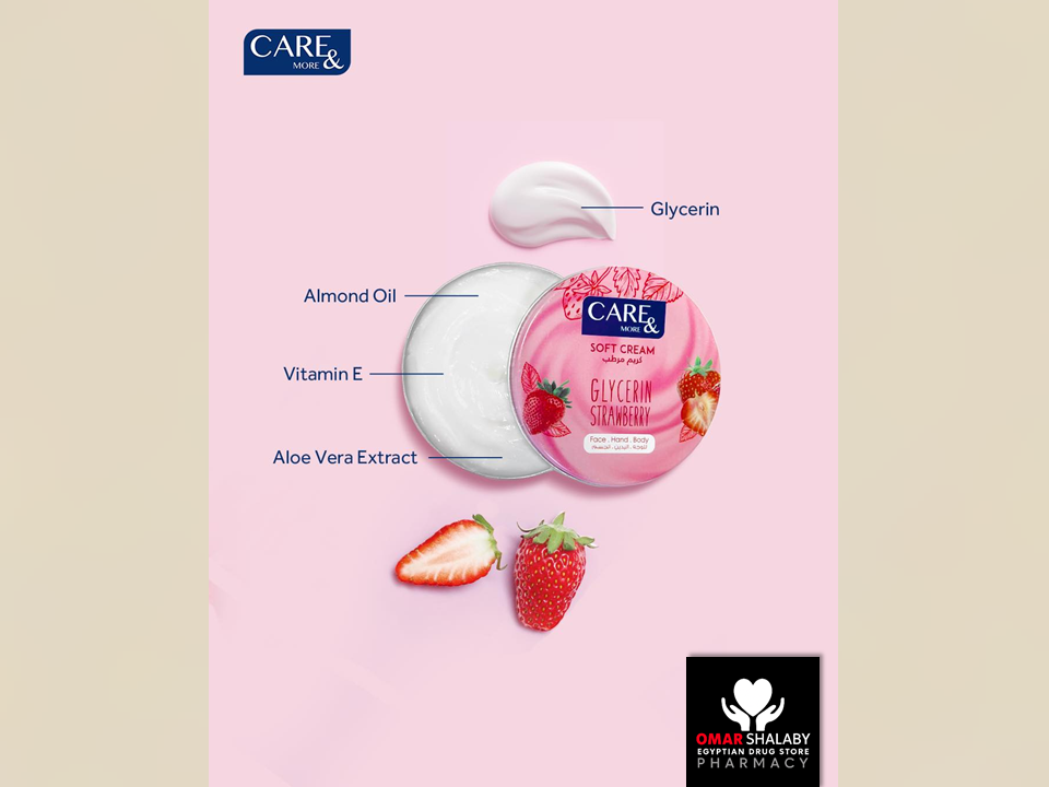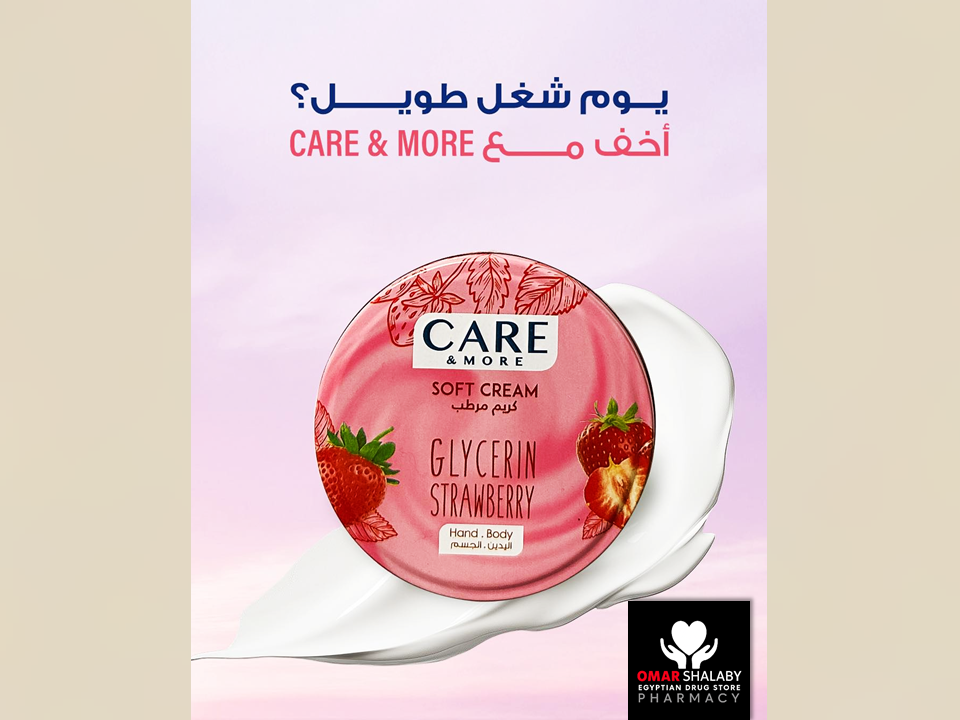 Keep your hands and body soft, smooth, and protected with Care AND More Glycerin Soft Cream. Enriched with Glycerin, Aloe Vera Extract, Vitamin E, and Almond Oil, this nourishing cream moisturizes, protects, and shields your skin from dryness and environmental stress. Perfect for daily use on all skin types.