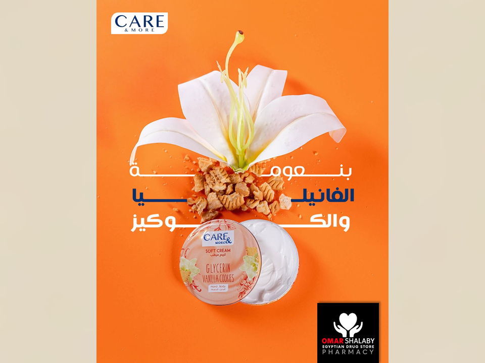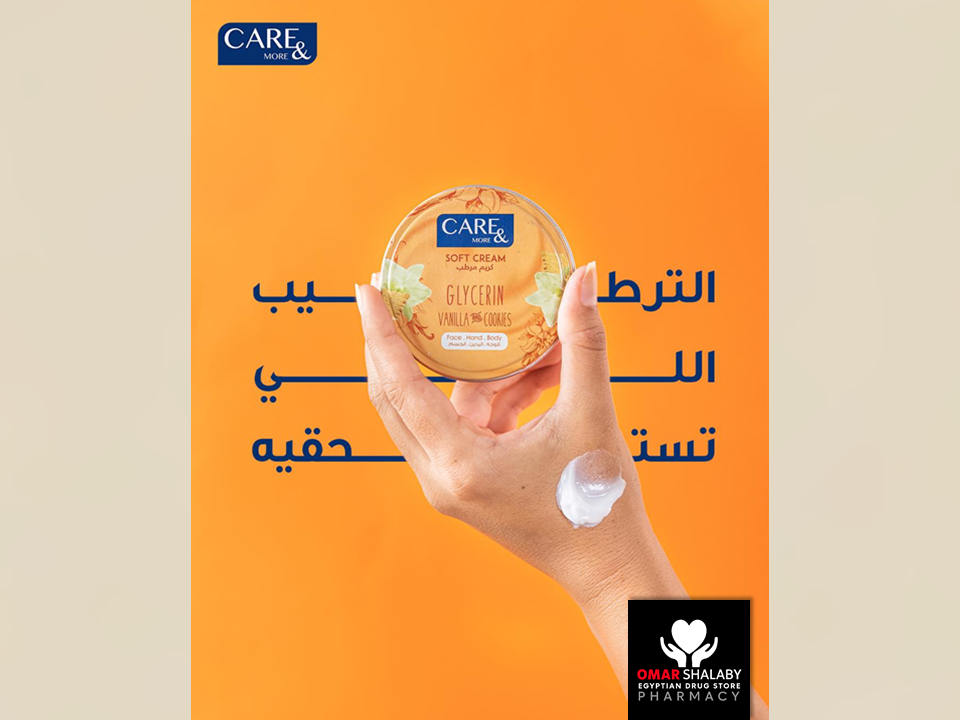 Keep your hands and body soft, smooth, and protected with Care AND More Glycerin Soft Cream. Enriched with Glycerin, Aloe Vera Extract, Vitamin E, and Almond Oil, this nourishing cream moisturizes, protects, and shields your skin from dryness and environmental stress. Perfect for daily use on all skin types.