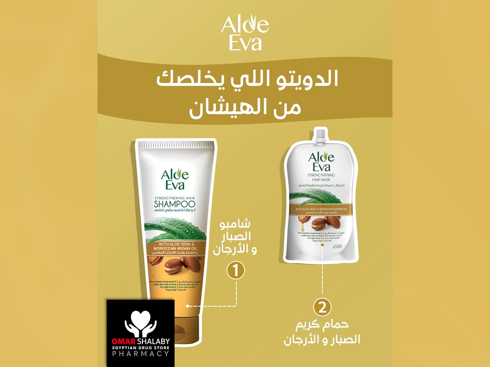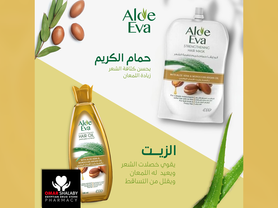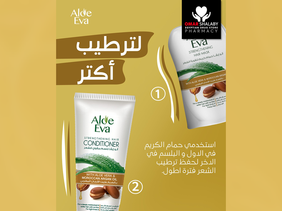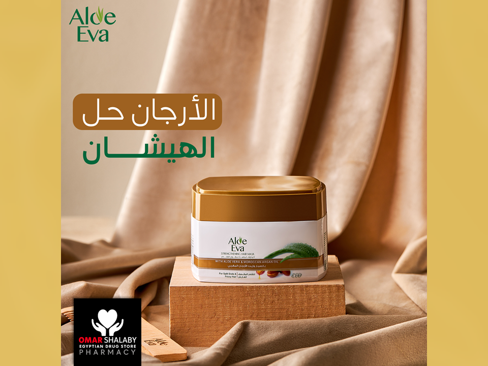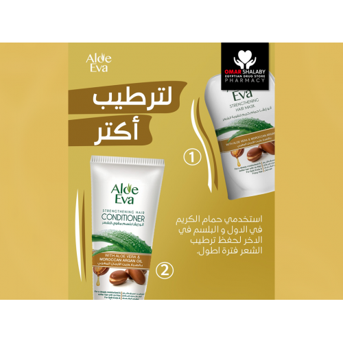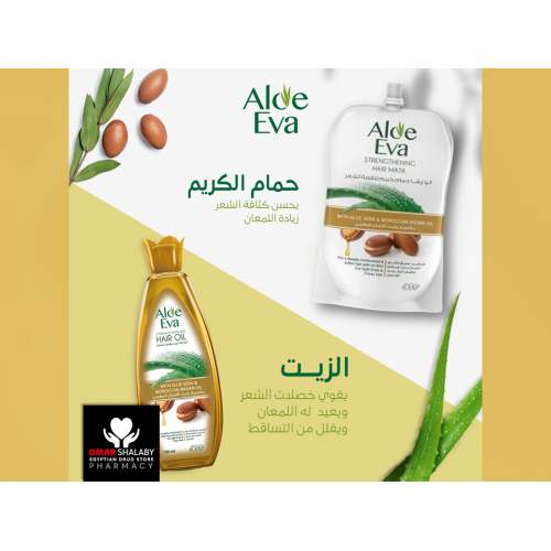 Aloe Eva Strengthening Hair Mask with Aloe Vera and Moroccan Argan Oil, provides a deep conditioning effect, reduces frizz and breakage while making your hair soft and shiny.