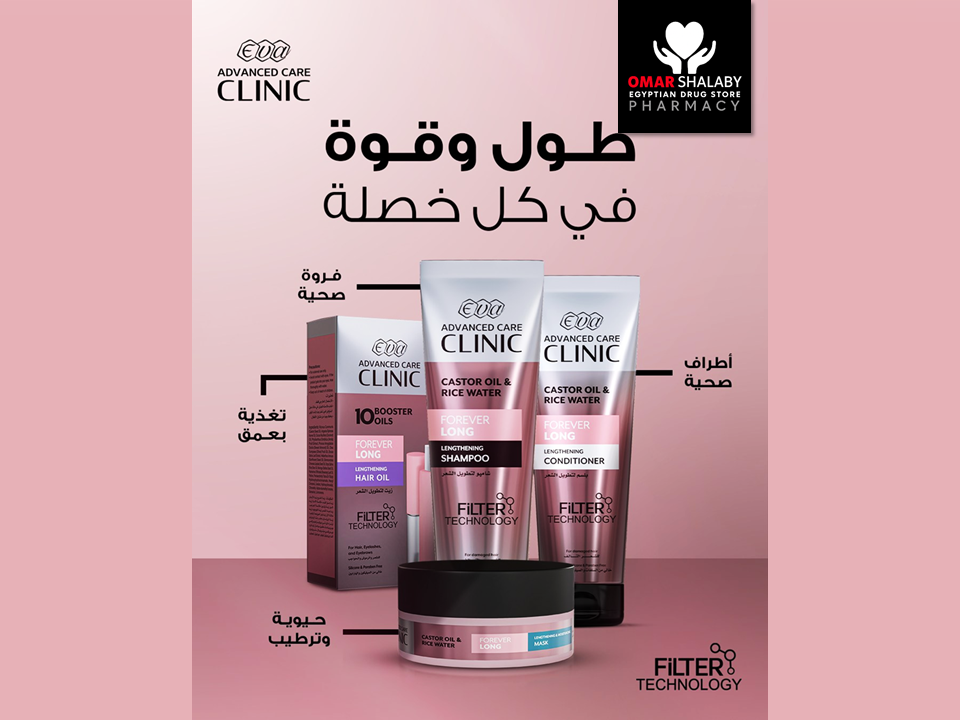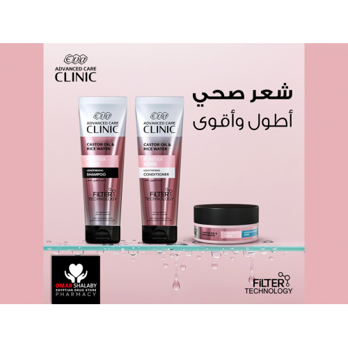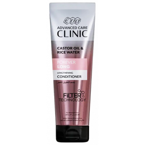 Eva Advanced Care Clinic Castor Oil & Rice Water Forever Long Lengthening Conditioner with Filter Technology helps to prevent harsh minerals and metals, present in tap water, to bind with your hair. It detangles and improves hair shine without any oil residues. This conditioner is made with perfect complementary blend of ingredients, including Castor Oil & Rice Water, to help promote longer hair and reduce split ends and breakage.