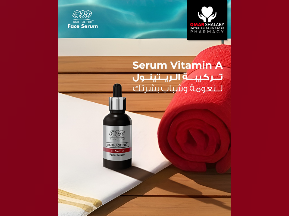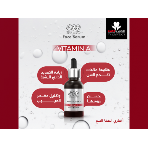 EVA Skin Clinic Facial Serum with Vitamin A is a topical skincare product designed to support skin renewal and improve overall skin appearance. It helps reduce the appearance of fine lines and wrinkles by promoting skin cell turnover. The serum provides deep hydration, improves skin texture, and enhances skin tone and radiance. Enriched with antioxidant oils, it helps protect the skin from dryness and environmental stress, leaving the skin smoother, healthier, and more refreshed.